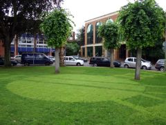 The grass by office buildings down Station Road has been cut to leave a representation of the old railway turntable that once resided nearby.